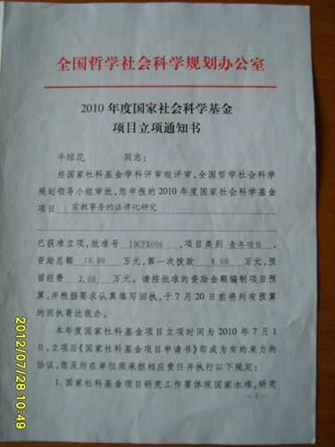 1、主持国家社科项目,“宗教事务的法律化研究——以藏传佛教宗教事务为例”,项目编号10CFX006,2010年。