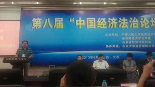 2013年6月14日-6月16日,齐建辉老师参加了由山西省太原市山西财经大学召开的“第八届经济法治论坛”,并在会上作了《市场自治与法律规制视野下的企业破产重整若干法律问题研究》的专题发言。