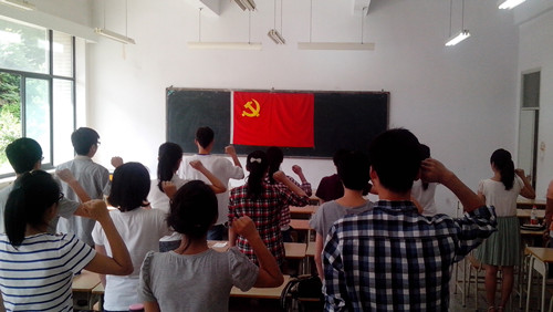 6月27日下午,学院党总支在教学十号楼E区108室举行新党员入党宣誓仪式。学院党总支副书记李仁主持此次入党宣誓仪式。