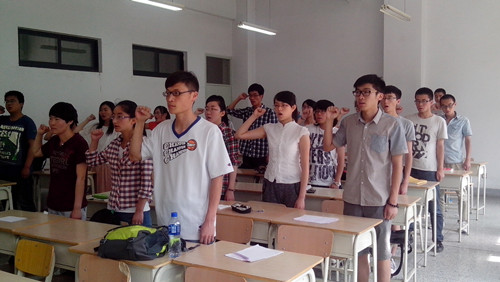 学院本科生党支部副书记杨勇宣读了新党员名单。随后10级法学班的魏晓慧带领新党员庄严宣誓。面对鲜红的党旗,党员高举右手,庄严宣誓,用誓词表达了对党的无限忠诚和崇高敬意,表达了积极投身党的事业、执着奉献的决心。
