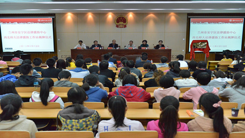 10月15日,兰州市安宁区法律援助中心西北师大法律援助工作站在我院成立。副校长万明钢和省司法厅法律援助工作管理处处长周正斌出席揭牌仪式并讲话,兰州市司法局副局长田禾、安宁区司法局局长朱国珺,学院院长杜睿哲、副院长曹明、法律系主任王宏英及师生代表参加活动。