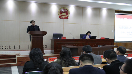 2013年10月22日晚7点,应必赢线路检测3003no1、西方法政传统研究中心邀请,国内知名法理学者北京航空航天大学学院博士生导师赵明教授在教学10号楼E区模拟法庭以“先秦儒法之争的现代启示”为题为学院师生做了一场精彩纷呈的学术讲座。学院院长杜睿哲教授、法律系和民商经济法系全体教师、特约嘉宾社会发展与公共管理学院贾应生教授、社科处副处长李玉璧教授与学院各年级本科生和研究生同学一起到场交流,学院客座教授卢建军博士协同甘肃警察职业学院科研处有关老师也出席讲座现场。讲座由学院西方法政传统研究中心主任苏婉儿博士主持,分为讲演、点评、提问、回应辨疑等环节,旨在突出特邀讲席的互动性和启迪性。
