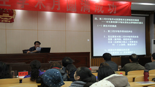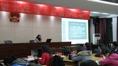 作为学院研究生学术月系列活动之一,此次活动得到了学院领导的高度重视,学院做了积极准备,在选题和报告材料做了精心准备,硕士生导师悉数莅临现场指导。四位硕士研究生分别做了《P2P服务提供者行为法律规制问题研究》、《简析第三法域的存在》、《我国现行房屋拆迁制度中公共利益界定》和《从社会控制功能浅析日本神道教》的报告,各位老师即时进行了点评和指导,并对报告中涌现的亮点给予赞扬和肯定,同时也指出了报告中存在的不足之处。现场互动热烈,气氛高涨,充分调动了同学们的科研热情。
