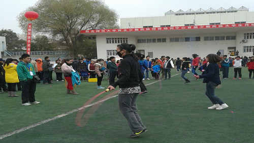运动会当日,气温骤降,寒风凛冽,雪花飞舞。同学们的欢呼声、加油声此起彼伏,运动场成了温馨欢乐的港湾。射箭比赛讲究臂力和精准度;飞镖比赛注重手腕的巧劲和精确的瞄准;跳绳比赛需要良好的弹跳和速度;踢毽子更需要沉着冷静;最精彩的高脚竞速则需要娴熟的技巧。更值得一提的是三人板鞋接力赛和四人五足跑,运动员之间彼此默契的配合成为胜利的决定性因素。