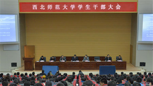 近日,学校在新校区毅然报告厅召开了全校学生干部大会。党委副书记、副校长朱卫国和学生工作部(处)、武装保卫处、西北少数民族师资培训中心办公室、团委、兰天学生公寓管理中心等部门负责人出席会议。我院团委书记、辅导员,学生会主要干部、各班班长共计11人参加了此次会议。