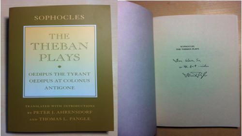皮特·阿兰斯多夫(Peter J. Ahrensdorf)教授、托马斯·潘高(Thomas L. Pangle)教授共同完成的最新研究性英译本《索福克勒斯的底比斯系列剧》(Sophocles’ The Theban Plays:Oedipus The Tyrant, Oedipus At Colonus, Antigone),作为潘高教授主编的阿果拉丛书(Agora editions)之一,日前由美国康奈尔大学出版社(Cornell University Press)付梓刊行。新书问世之际,英译者特向我院西方法政传统研究中心惠赠新作。