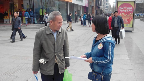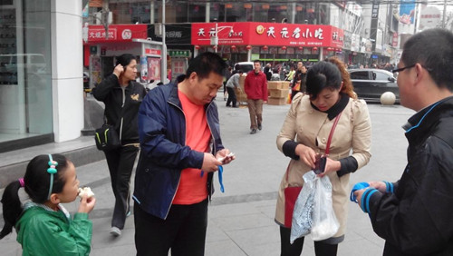 为了此次活动的顺利进行,1班班委提前做了活动计划,安排志愿者制作募捐箱,并印发传单让大家更方便的了解关于自闭症知识。29日晨,法1班同学们早早的赶到了张掖路,在了解了任务后即刻开展行动。也许是因为从未参与过这种向陌生人微笑、出售爱心的活动,大家都显得有些拘谨和不知所措。五元一个的口罩并不是很贵,但很多人只是对志愿者摆摆手或者干脆绕道而行,这让我们的心里不禁打起了退堂鼓。但一想到孩子们,我们便打起精神,大家高喊着:“自闭症儿童求关注、求爱心。关注自闭症,我们在行动!”的口号,并向路人派发传单、宣传自闭症的知识在熙熙攘攘的闹市区,这些铿锵有力的口号引起了过往行人的侧目。当第一个口罩成功售出时大家都被鼓舞了。很快,在我们用微笑和真诚向路人介绍关于自闭症儿童的有关情况之后,很多爱心人士纷纷毫不犹豫的买下了口罩,并捐了善款。其中不乏稚气未脱的孩子们,他们拿着自己的零花钱塞进募捐箱,用小小的手捧起了一颗颗关爱之心。
