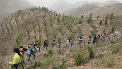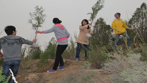 当天恰遇强沙尘暴天气,气温骤降,“泥雨”裹挟在寒风之中从天而降。上午八点半,师生们集体出发,在泥泞的山路上徒步行走四十多分钟到达北山绿化基地。随后,后勤部门工作人员分派了工作任务,我院主要负责将2000多棵树苗从北山绿化基地山顶运送到半山腰。由于山路崎岖,行走困难,同学们在山坡上排成长队,用自己的双手将一棵棵树苗传送到栽种点。虽然天气寒冷,风雨交加,同学们没人喊苦叫累,师生团结协作、奋力苦干,加油声、鼓劲声此起彼伏,掀起了一个又一个劳动高潮。中午时分,本次植树劳动圆满结束,同学们的工作受到绿化基地工人师傅的一致好评。