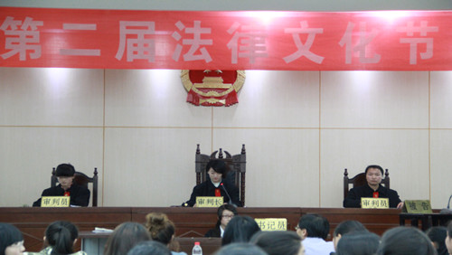 4月29日,学院团委开展“崇法明理,和谐法治”主题日活动,内容包括宣传《消费者权益保护法》、法律电影推介、法律常识竞答、经典案例分析、模拟审判等。其中在学院模拟法庭举行的“模拟审判”活动深受同学们欢迎。模拟审判由学院20名同学担任法庭审判的相关角色,审理的案件为兰州市安宁区人民法院刑事审判庭以往受理审判的真实案例,性质为青少年刑事犯罪。审判过程包括宣布开庭、法庭调查、法庭辩论、被告人最后陈述、评议、宣判等环节。