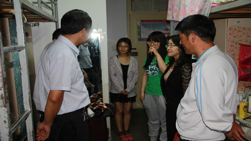 在毕业生宿舍,学院领导详细询问了他们的升学、就业及离校准备情况,叮嘱同学们在离校期间一定要注意自己的人身财产安全。同时也勉励同学们带着梦想来,怀着情感走,在未来的工作岗位上老老实实做人,踏踏实实做事,用自己的实际行动为学院争光添彩,同时也希望大家在以后的工作和生活中有时间了常回学院看看。毕业生对于学院领导在百忙之中能够抽时间看望自己,都深切感受到了学院这个大家庭的温暖,他们纷纷表示感谢学院领导和老师的亲切关怀,并表示会在今后的工作和生活中继续发扬师大学院的优良传统,为母校争光,为学院添彩。