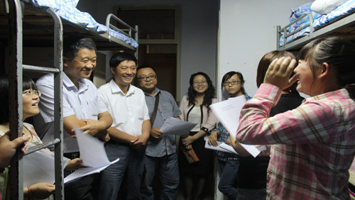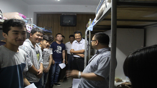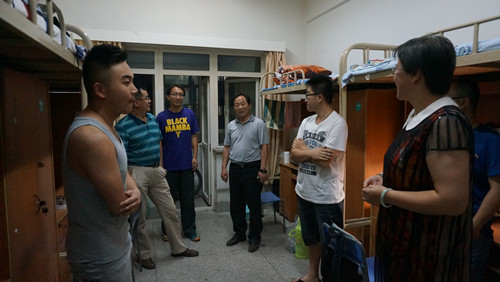 9月4日晚,在2014级新生入校报到后,学院领导、系主任、班主任、团学老师前往兰天学生公寓和新校区研究生公寓,走访学生宿舍,亲切看望2014级新生。