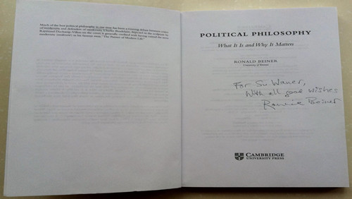 罗纳德·贝纳尔(Ronald Beiner)教授新著Political Philosoph:What It Is and Why It Matters(《政治哲学:为何?有何不得了?》)近日由剑桥大学出版社付梓。新作问世之际,作者特向我院西方法政传统研究中心惠赠样书。