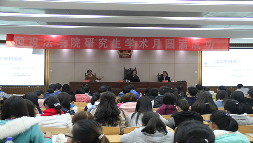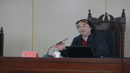 2014年 11月7日,应学院邀请,全国知名法律学者、西南政法大学人权教育与研究中心执行主任、博士生导师张永和教授在教学十号楼E区模拟法庭为我院师生作了题为《法之本相追问》 的学术报告。报告由学院副院长曹明博士主持,王勇教授担任点评嘉宾。学院本科生及研究生共计二百余人聆听了报告。学院教师牛绿花教授、王宏英副教授、苏婉儿副教授、张芸副教授、赵书文博士及我院兼职教授卢建军博士也参加了报告会。西南政法大学赵树坤教授、胡兴建教授、周尚君教授等一行也莅临报告会现场与师生见面交流。整场报告场面热烈,持续三个小时。