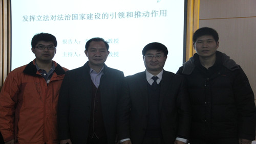 李老师在报告时分析到,四中全会推进依法治国的决定是国家政治体制改革的体现,是总结新中国法治建设经验后的正确抉择,是中国把握和平发展崛起的国际环境机遇;立法在治理国家的政治生活处于“龙头地位”有举足轻重的影响;立法是分配正义的艺术,立法正义是社会最大的正义;立法先行,发挥立法的引领作用,是党对社会治理规律的深刻把握,也反映出党对治国理政的自信,是马克思主义的中国化理论中的立法理论的创新和重大发展。