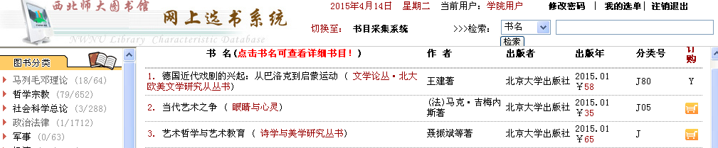 进入如下界面,点击左侧分类后点击订购选书。