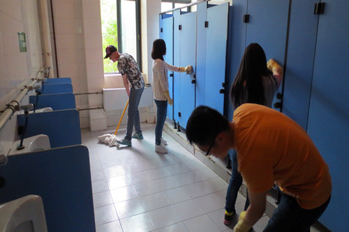 座谈会后,同学们又一次对学院公共卫生间和教室进行了清洗打扫,表达对母校的留恋之情。同时希望以实际行动为师弟、师妹们树立榜样,给母校留下美好印象。