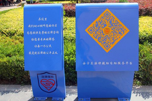 此次建立的法律援助自助服务平台采用当下流行的“扫一扫”,通过扫描平台上的二维码标识,以自助的形式方便快捷的进行申请法援,维权行动等一系列法律援助服务,从而解决了过去在援助过程中出现的程序繁琐,耗时费力的现象,从而更加高效的进行法律援助服务工作。同时,为更好的开展普法宣传教育工作,除了自助服务平台外,我院还联合安宁区司法局在10D教学楼前修建了法律文化展板和常用法律书籍雕塑。其中,法律文化展板向大众清晰地介绍了我国古代法制巨著——《法经》的产生渊源,而常用法律书籍雕塑同样采用二维码的形式,直观的向来往的人群介绍《保险法》、《婚姻法》、《劳动合同法》、《公务员法》等12部涉及我们生活各个方面的法律法规,用“扫一扫”的方式方便大众随时浏览法条,及时解决现实生活中存在的问题。