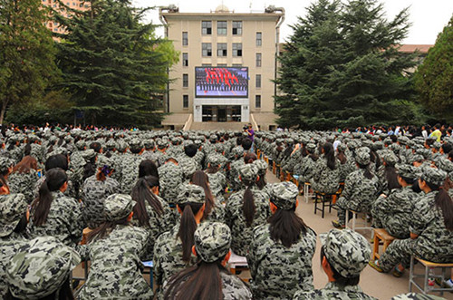 9月3日上午9时,辅导员赵小培老师组织学院学生会干部及大一军训新生分别在大学生活动中心二楼和中心广场观看阅兵典礼实况,在观看阅兵直播的过程中,同学们个个心情激动,民族自豪和自信心倍增;晚上7点30分,2014级法学(2)班的同学门在10D105教室组织召开了以爱国主义教育为主题的团组织生活会,通过收看爱国主义题材影视作品、学习抗战歌曲、抗战历史知识问答等形式,向同学们传达了中华民族不屈不挠、自强不息的民族精神。