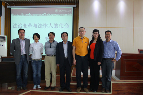 2015年9月15日上午10点,应学院邀请,北京理工大学学院教授、国内著名法理学学者谢晖先生在教学10号楼模拟法庭,为我院师生作“社会变革与法律人的使命”专题讲座。学院副院长吴国喆教授、法律系和民商经济法系牛绿花、齐建辉、蔡芳、王兰等嘉宾老师出席讲座现场,学院各年级本科生和研究生同学到场交流学习。讲座由苏婉儿老师主持。