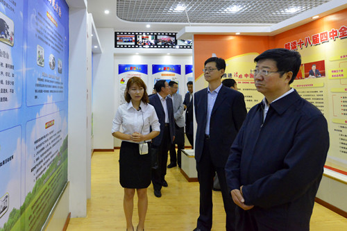 王玺玉一行来到我院模拟法庭、兰州市大学生法制宣传教育基地、法律实训实验室、西北师范大学法律援助工作站和安宁区法律援助自助服务平台进行了现场考察,观看了我院学生拍摄的法制宣传微电影《我的手机》、法律实训软件和法律援助自助服务平台申请法律援助演示,对我院在“六五”普法中的相关工作给予了充分肯定。