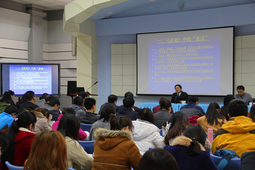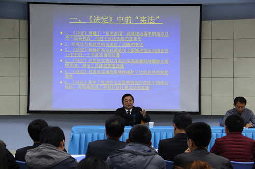 3月6日,应学院邀请,中国社会科学院法学研究所莫纪宏教授来我校教师发展中心作了题为《依法治国关键是依宪治国》的学术报告。学院部分教师和学生约150人参加了报告会。报告中,莫纪宏教授解释了“依宪治国”作为一个重要的法学范畴在我国法学研究的形成和演变,随着社会的发展和社会共识的达成,依宪治国更是成为我国依法治国战略中的重要内容;接着澄清了依宪治国在一般观念中存在的模糊和误区,厘清了依宪治国在依法治国中的作用和意义;随后强调了培养宪法思维的重要性,一定要将依宪治国真正落实到实处,推动依法治国事业取得更大的成果。