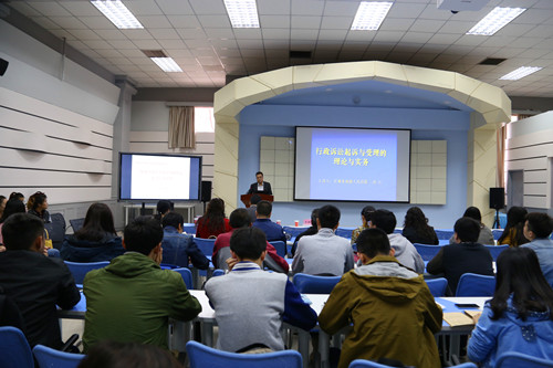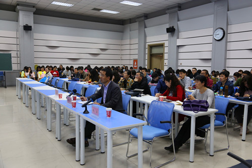 第二场报告会由我院吴国喆教授主讲,题目是“借鉴与反思:美国法律实践的现象观察”。讲座之前苏婉儿博士作为主持人首先阐释了法律的实施情况是一个民族的典型特征这一观点,并指出法律本身作为一个舶来品,需要学习者自己去体会其在发源地的基本运行情况,在无法亲自感受的情境下,第二手的经验也非常有价值,由此引出报告。吴国喆教授从他在美国生活中所感受到的几个现象,分析、解读其背后的法律精神,进而分析对我国的可能借鉴意义。法律无非生活,因此生活中的点点滴滴总与一定的法律精神、法律规则相关联,从现象解读法律是一个外来观察者研习法律的基本方法。讲座后半段,师生也进行了广泛深入的讨论交流。