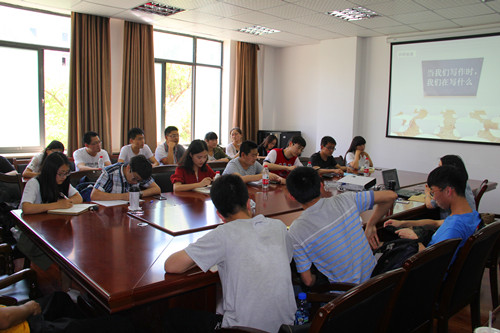 6月3日下午三点至六点,我院西方法政传统研究中心在教学10号楼D区204为我院研究生举办了以“当我们写作时,我们在写什么”为主题的小型学研座谈,在师生之间、即将毕业的学长与正在探索中的一二年级同学之间围绕理论法学方向的研修和写作展开了坦诚深入的对话。座谈由苏婉儿老师主持,法学专业各年级的硕士研究生参与座谈,2013级法学理论专业硕士研究生王永祥、马文涛、杨蕤、雷鹏分别作了专题发言并与现场学友互动交流,曹明老师、齐建辉老师莅临座谈。