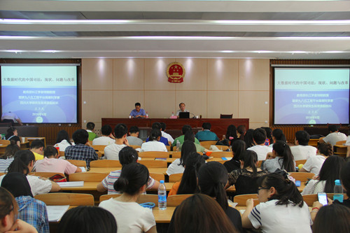应学院邀请,四川大学研究生院常务副院长、长江学者特聘教授、全国十大杰出青年法学家左卫民先生,于2016年6月30日下午在学院模拟法庭做了一场题为“大数据时代的中国司法”的学术报告。