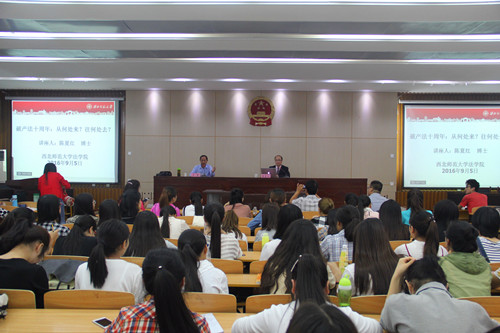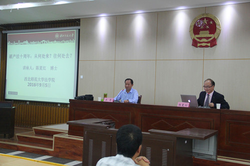 9月5日上午,应学院邀请,《中国政法大学学报》编辑,中国政法大学破产与企业重组研究中心研究员陈夏红博士在学院模拟法庭作了题为《破产法十周年:从何处来?往何处去?》的专题讲座。学院师生百余人参加了本次讲座。讲座由学院王勇教授主持。