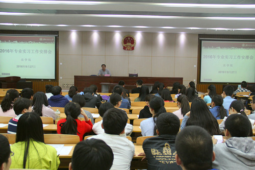 9月27日下午,学院在模拟法庭召开2013级法学专业学生实习动员大会,民商经济法系主任齐建辉、实习带队教师张芸、张敏、张继文、车亮亮以及2013级全体学生参加会议。
