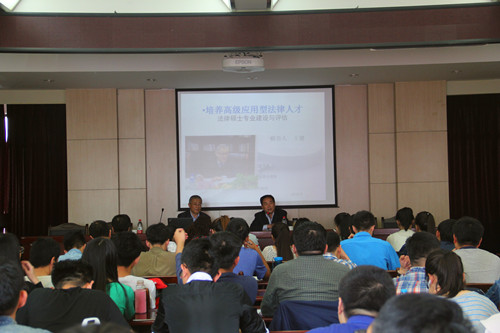 报告会中,王健教授紧紧围绕“培养高级应用型法律人才和法律硕士专业建设与评估”展开,从对法律硕士基本概念所涉及到的相关问题进行介绍作为切入点,对我国法律硕士专业学位设立的历史进行了细致梳理,通过大量的数据对目前我国法律硕士专业学位在全国的整体发展现状进行了深入浅出的讲解,并在对大量实证数据分析归纳的基础上,得出了对于法律硕士专业学位的管理以及运行体制、培养模式的具体设想,最后还对法律硕士专业学位的评估提出了宝贵的建议和意见。