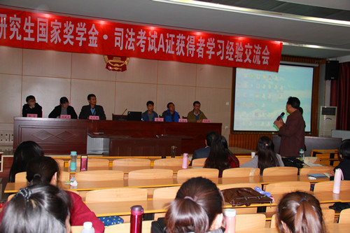 10月27日,学院研究生会举办的国奖获得者和司考通过者学习经验交流会在模拟法庭召开,杜睿哲院长、党崇武老师以及在校全体研究生参加了交流会。