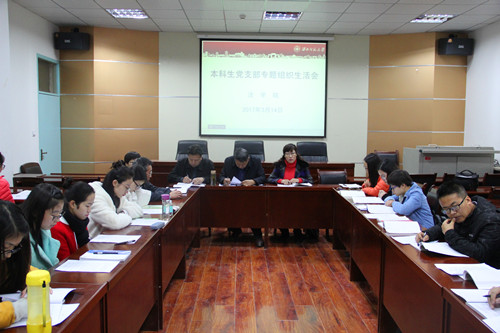 3月14日下午,在学院105室本科生党支部召开了专题组织生活会,学院党委书记张喜爱,其他支部书记、本科生党支部全体党员共60余人参加了此次会议。