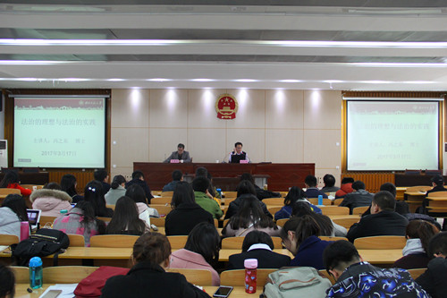 2017年3月17日下午,应学院邀请,甘肃省省委政法委执法监督处处长冯之东博士在学院模拟法庭为全院老师和学生做了题为“法治理想与法治实践”的学术报告。