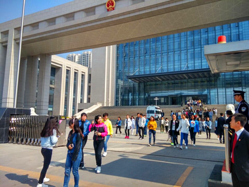 为更好的进行普法宣传,树立学生的法治观念。4月27日早晨8点,我院组织2015级法学1班全体学生对甘肃省高级人民法院进行参观活动。在法院工作人员的带领下,同学们参观了法院审判庭并在第二法庭旁听了两起刑事案件的审判。同学们站在第一视角,亲身感受法院的审判全过程。整个过程中,同学们通过认真的倾听,充分了解法院的审判程序,对于法律的权威性与严谨性有了深层的认识,树立起应有的法治观念。除此之外,同学们更是亲身体会到了法律的庄严,以及作为一名法科学生的自豪感。审判结束后,同学们从法庭有序退出,并与工作人员进行了一个简短的交谈,了解到了一些有关开庭及审判的程序设置问题,整个过程使同学们收获颇多。