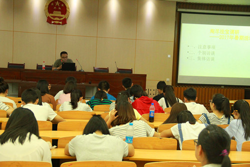 颁奖仪式结束后,熊征、赵书文老师对参加2017年暑期社会实践的同学进行详细的调研指导,熊老师从调研实际出发,告知同学们如何开展调研的相关准备工作,以及如何与受访者建立良好的合作关系;赵书文老师总结自身调研经历,从注意事项、个别访谈、集体访谈等三方面给大家介绍了调研过程中需要注意的事项。