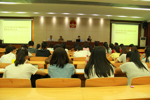 6月22日晚七点三十分,我院在模拟法庭举行“淘尽法宝”社会实践颁奖暨2017年暑期实践活动启动仪式。学院王勇、熊征、赵书文老师,团委书记赵小培以及社会实践队员共60余人参加了此次活动。