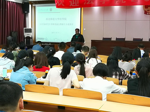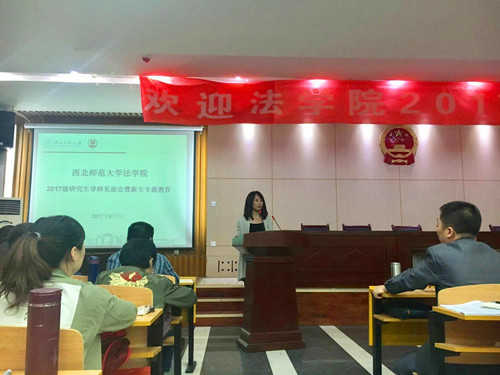 9月8日晚,2017级研究生导师见面会暨新生专题教育大会于模拟法庭拉开序幕,学院各级领导、研究生导师及全体研究生新生参加本次会议,会议分三个模块由研究生系主任车亮亮老师主持进行。