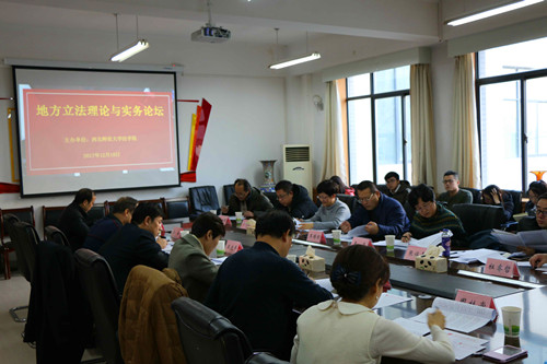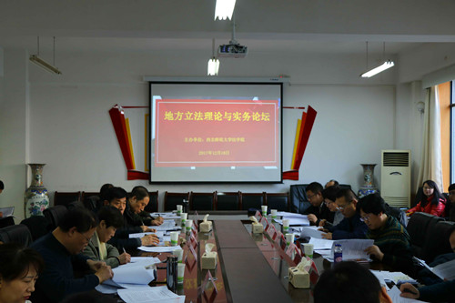 2017年12月18日,学院在10号楼D区307会议室举办了地方立法理论与实务论坛。论坛围绕立法体制与地方立法权配置、第三方参与立法、地方立法中的“不抵触”原则三个主题,并结合《嘉峪关市市容和环境卫生管理条例(草案稿)》的起草过程,就地方性法规在立法过程中遇到的理论与实践问题进行了集中研讨,取到了良好的效果。本次论坛由必赢线路检测3003no1院长杜睿哲教授主持,应邀参加本次论坛的专家有兰州大学学院院长俞树毅教授,甘肃省委党校政法部主任张佺仁教授,西北民族大学学院院长郑天锋教授、兰州大学学院周桂党教授,甘肃省人大常委会教科文卫工作委员会副主任王锡明,甘肃省政府法制办公室法规处处长王晶,兰州市人大法工委主任张福寿,兰州市政府法制办公室主任贾建军,兰州市政府法制办公室法规处处长苏泽云,嘉峪关市市委常委、常务副市长王进平,嘉峪关市人大常委会副主任王真智,嘉峪关市政府法制办公室主任王寿华,嘉峪关市环卫局党组书记、局长王晶等。另外,我院部分教师和学生也积极参与了本次论坛。