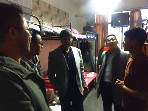 为做好2018年春季学期学生开学报到注册及安全教育工作,3月4日晚7点,学院党委书记张新民,辅导员赵小培,班主任张久相、叶建平、何俊毅及学生干部前往兰天公寓走访学生宿舍。