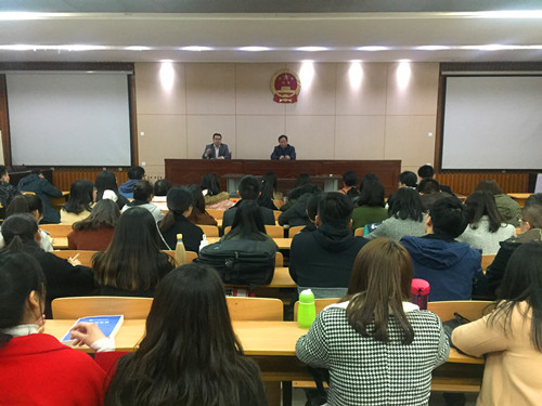 2018年3月5日下午,我院师生在模拟法庭举行了“2017级法律硕士研究生培养方案课程解读”的会议,会议由我院副院长齐建辉主持召开,院长杜睿哲作主要发言。