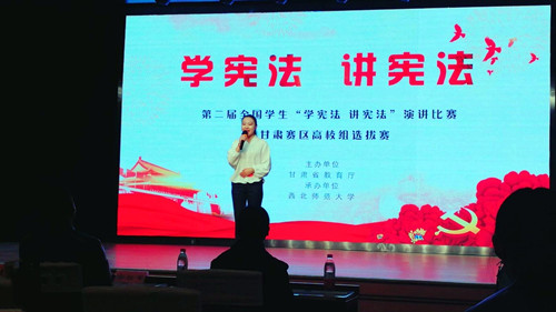 2017年10月12日,第二届全国学生《学宪法、讲宪法》甘肃赛区高校组选拔赛主题演讲比赛,在西北师范大学学生发展中心二楼多功能厅举行。来自全省36所大中专院校推荐的38名选手参加本次比赛,甘肃省高校工委副书记贾宁,西北师范大学副校长张生勇及现场观众观看了此次比赛。