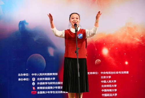 此次活动由来自全国各地的38名大学生分别进行高校组个人演讲、团队演讲和省队辩论赛。10月28日,丁一同学在个人赛中以《宪法——法治中国的太阳》为题深刻论述了她对宪法的理解和感受,从诠释宪法精神,维护宪法权威等多个方面展开演讲。10月30日,丁一同学和其他三名选手参加了团队演讲,以《美丽甘肃,与宪法同行》为题,展示了甘肃省近年来在法治工作中的进步与创新,让来自全国各地的广大师生对美丽甘肃有了进一步了解。10月31日,丁一同学和甘肃代表队高中组的其他选手组成省辩论组,和来自江西省辩论组的选手就“学生携带手机进校园利大于弊还是弊大于利”为辩题展开激烈辩论,最终,凭借丰富的法律知识和良好的表达能力,丁一同学分别获得个人赛和团体赛三等奖。