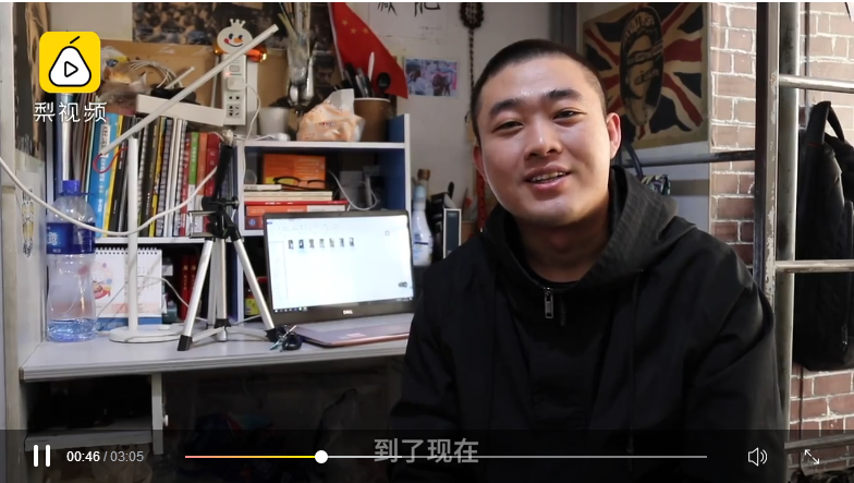 刘永帅同学从大二上学期开始接触短视频创作,起初的想法是丰富课余生活,后来经过大家的鼓励与支持,增强了他继续坚持下去的信心,现在创作的视频更多是为了回忆经典,传承文化,引起大家的共鸣。现在,“读经典、学经典、诵经典”活动深入校园,创作这类模仿视频,也是温习经典的一种新方式,让大家在课余时间以一种轻松,幽默的方式接触经典、重温经典。