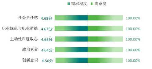 近三届毕业生认为专业培养目标与社会需求符合度、与自身职业发展需要符合度以及与学生期望的符合度均在90%以上,自身各项德育素养的增值度在95%以上,核心能力素养满足度在92%以上,学生和用人单位满意度高。