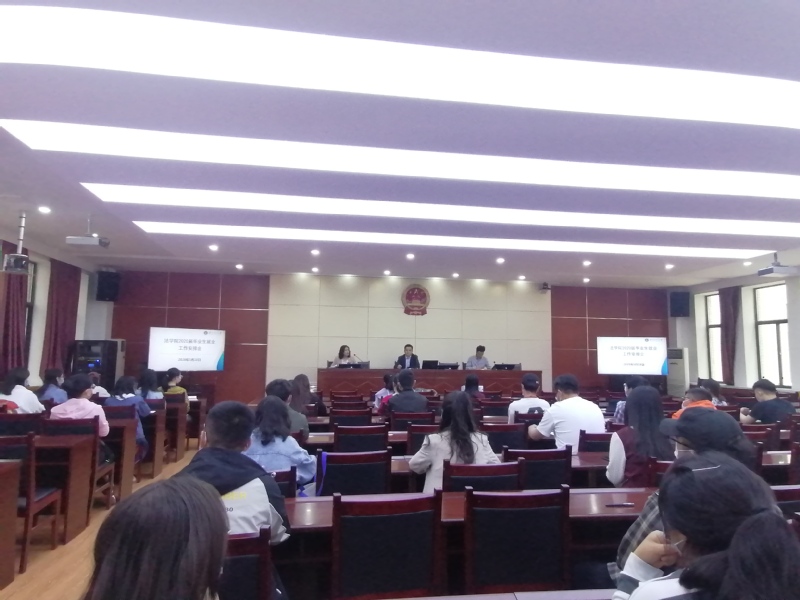 5月1819日,学院分班、分专业、分批次连续召开了3次2020届毕业生就业工作指导会。2016级法学1班、法学2班班主任、研究生导师、辅导员及全体毕业生约200人参加了会议。学院党委副书记王金元主持会议。
