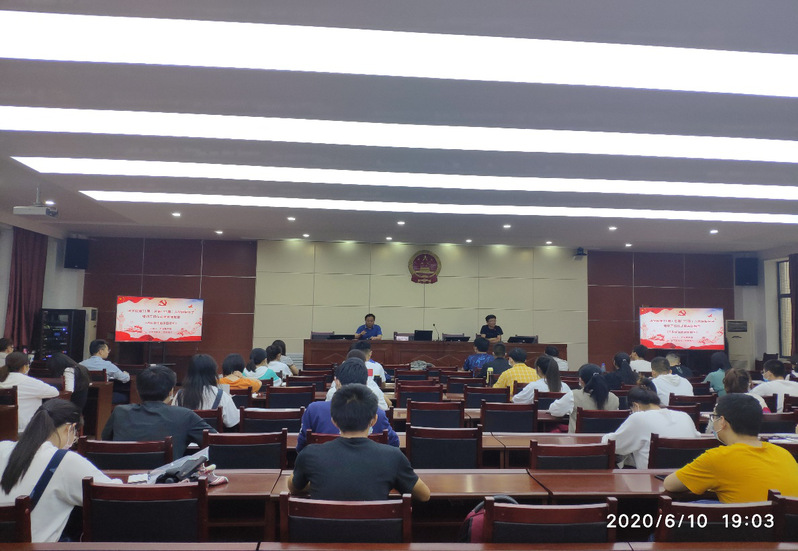 6月10日晚19点,学院第11期(总第135期)入党积极分子培训班开班仪式暨首场报告会在模拟法庭召开,开班仪式由张永祯老师主持,学院院长、党委委员杜睿哲教授作了《法科学生的家国情怀》为主题的专场报告,本期58名入党积极分子参加培训。
