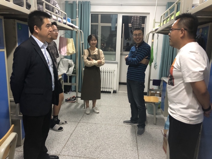 910日晚,为进一步了解新生入住情况,我院党委副书记王金元和副院长车亮亮老师带领研究生秘书周雪老师、辅导员宋香云老师、冯天娜老师及部分学生干部,亲自赴新生宿舍走访慰问,与新同学们亲切谈话,了解同学们的家庭情况、来校的住宿和生活情况,并叮嘱同学们注意宿舍用电安全、严禁使用大功率电器、禁止在宿舍生火做饭、外出一定注意安全和防护等事宜。