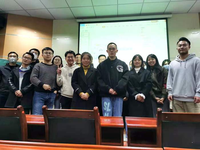 会后,同学们与三位2019级学长学姐们共同合影留念。