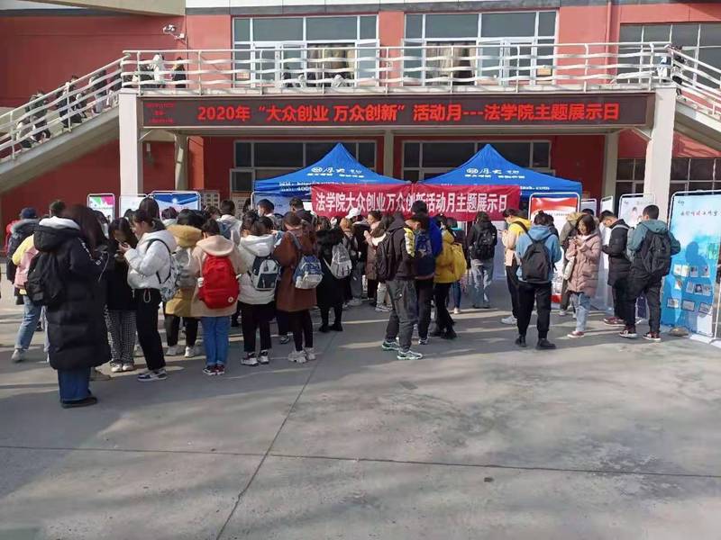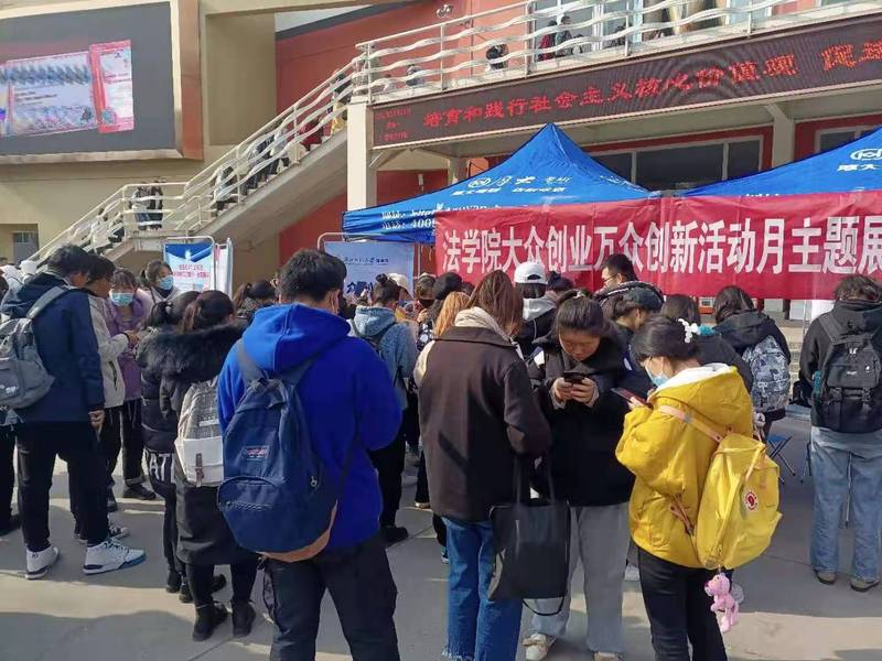11月23日星期一上午12:00为学院创新创业活动月主题日。我院在餐饮文化中心室外广场开展了法律知识竞赛活动,学生通过扫描二维码参与活动答题,获得60分以上可获得精美的小礼品。同时也在室外大屏播放由我院学生创作拍摄的法律宣传微电影。